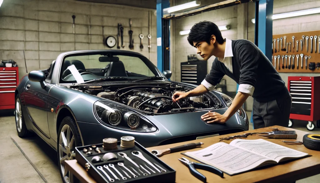 購入時の最大の盲点は、入口の安さに引っ張られてしまうことです。たとえば、相場最安値に近い個体は、すでに年式が古く、消耗品や不具合を複数抱えている可能性があります。購入直後は安く手に入った満足感がありますが、その後に幌修理、足回り整備、エアコン修理、タイヤ交換などが重なると、結果的に割高になるケースがあります。とくに輸入スポーツカーは、部品代や工賃が国産車より高くなりやすく、小さな整備でも積み重なると大きな金額になりがちです。